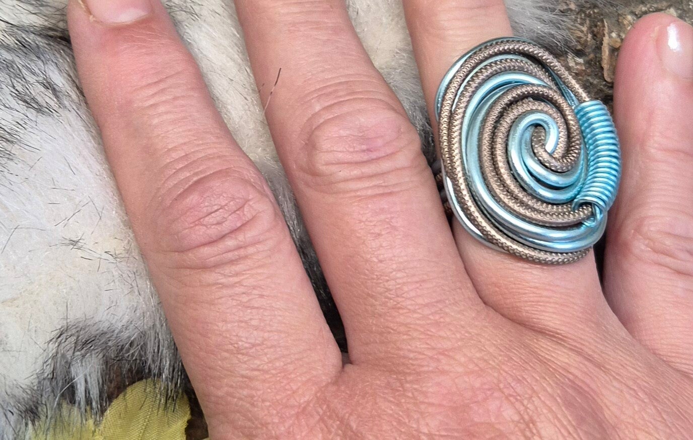 Ring gemaakt van 2 kleuren aluminium draad met een accent.